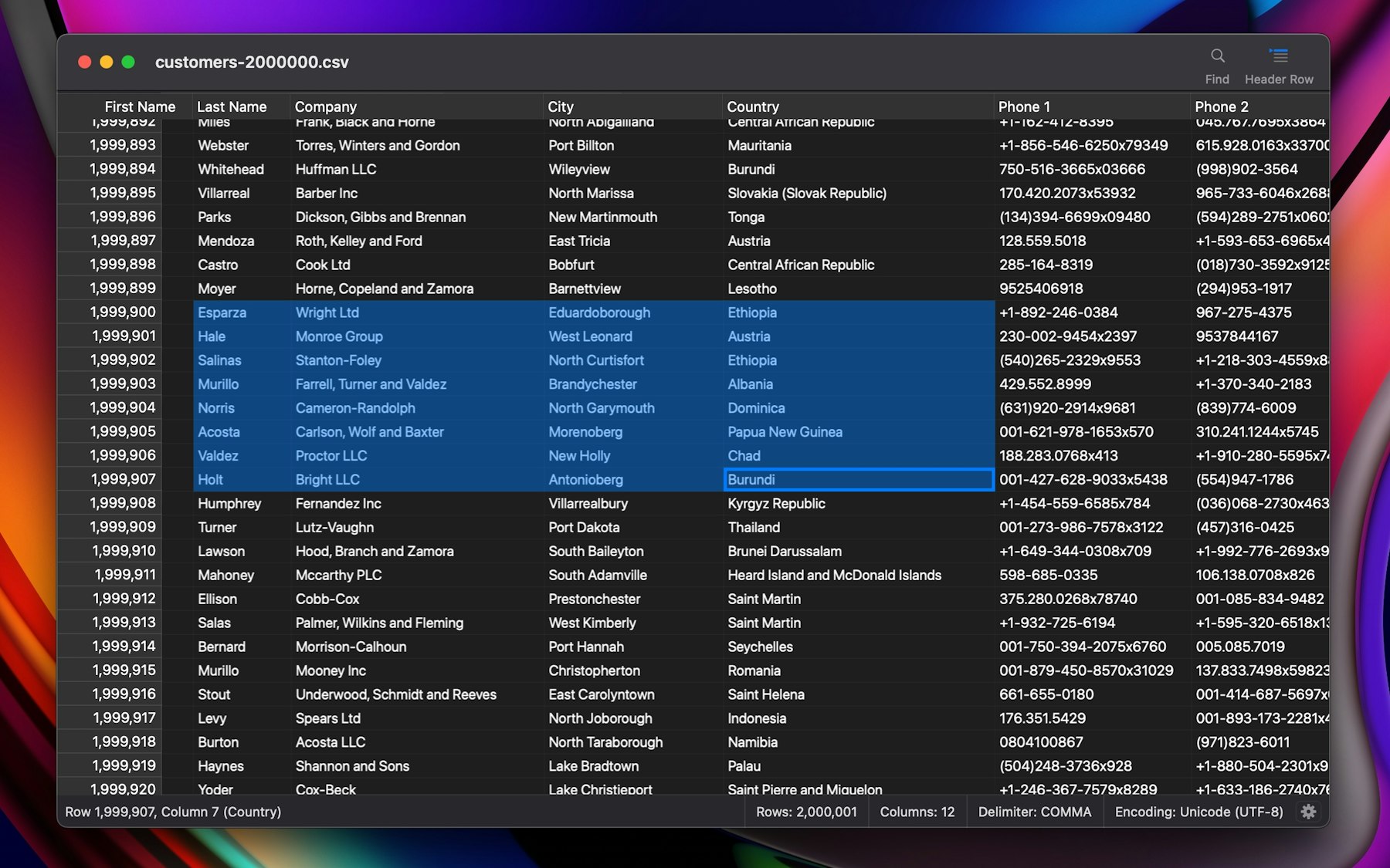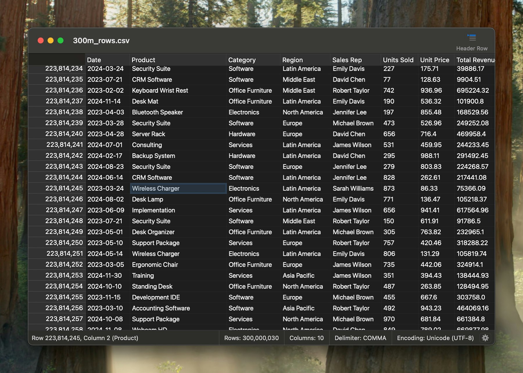 CSView comfortably handles multi‑gigabyte CSV files with hundreds of millions of rows, making it suitable for workloads where tools like Excel, Numbers, or traditional CSV editors struggle or fail.