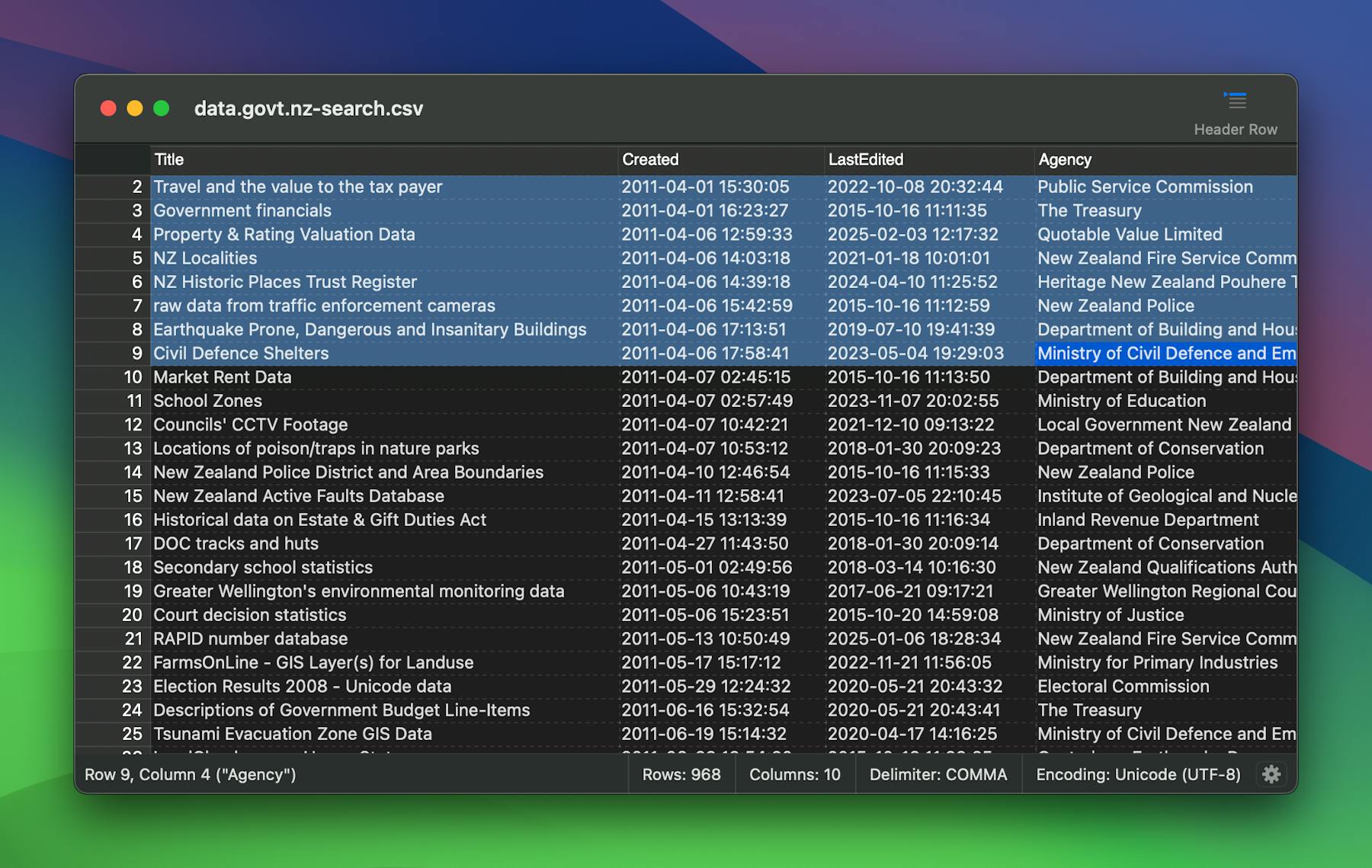 | Title | Created | LastEdited | Agency |